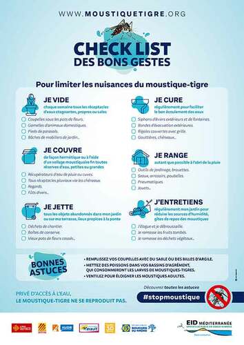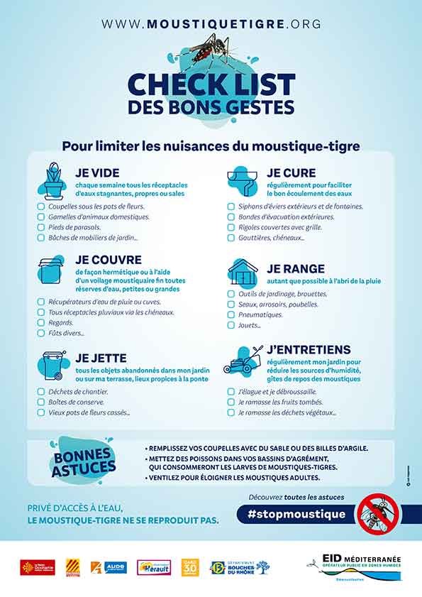 Ces « gîtes » de reproduction sont, en grande partie, « fabriqués » par l’Homme. Ils se trouvent, pour 80 % d’entre eux, au sein des domiciles privés : cours, jardins, terrasses, balcons… Il est impossible de les recenser tous et de les traiter systématiquement à l’état larvaire, car ils pullulent et sont aléatoires dans l’espace et dans le temps.