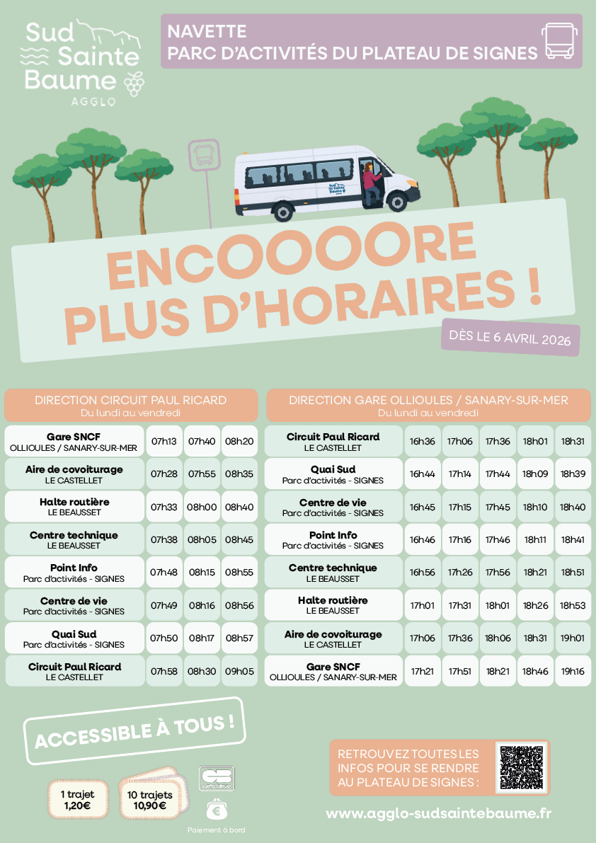 Le renforcement des navettes vers le Plateau d’Activités de Signes constitue une première étape. D’autres améliorations sont déjà à l’étude et viendront progressivement compléter cette offre dans les mois à venir.