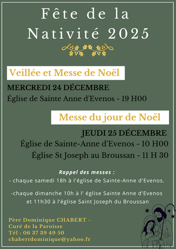 La veillée de Noël et les messes seront célébrées par le Père Dominique CHABERT :