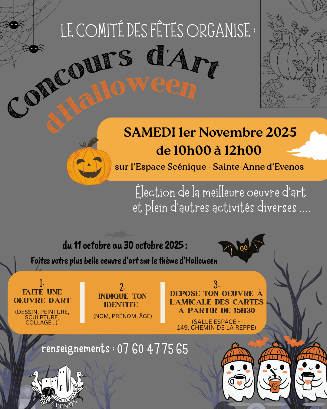 - Déposez votre chef d’œuvre avant le 30 octobre 2025 à l’Amicale des Cartes, à la salle des fêtes derrière l’église de Sainte-Anne du lundi au vendredi à partir de 15h30.