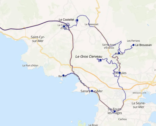 - Zoom sur la zone La Cadière - Evenos - Ollioules - Bandol - Openstreetmap / Cédric Frémi