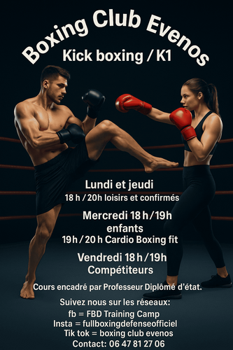 L’association Full Boxing Défense propose à ses adhérents, masculins, féminins, ados et séniors, une activité sportive, physique et ludique alliant cross training et sports de combats : full contact, k1 et self défense.