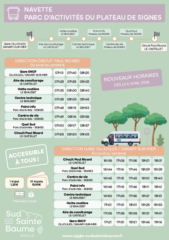 Le renforcement des navettes vers le Plateau d’Activités de Signes constitue une première étape. D’autres améliorations sont déjà à l’étude et viendront progressivement compléter cette offre dans les mois à venir.